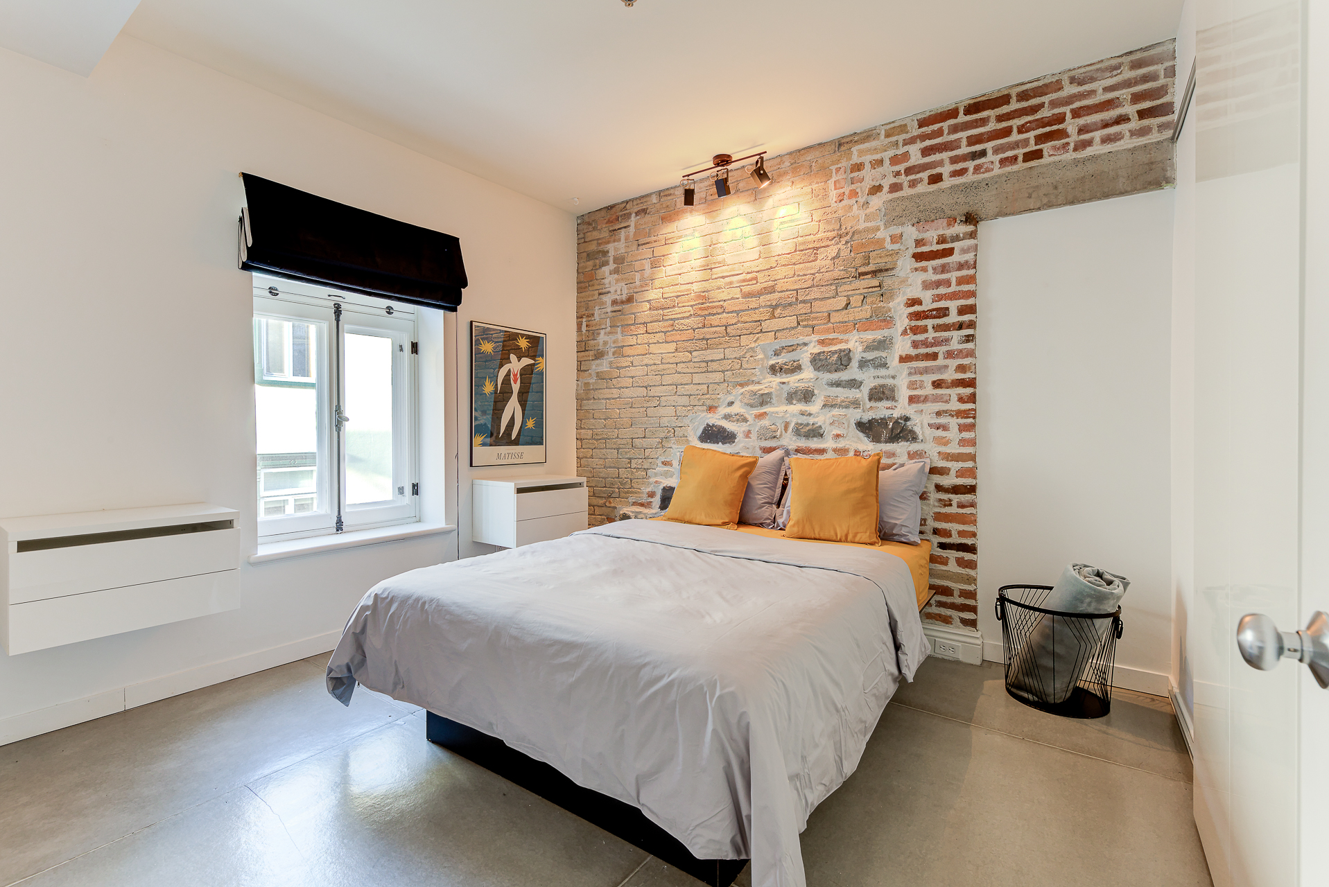 Cet immeuble du vieux-québec lauréat dun prix darchitecture abrite 42 logements et un stationnement. Appartements Historiques du Vieux Port Montreal. Chambres à coucher.